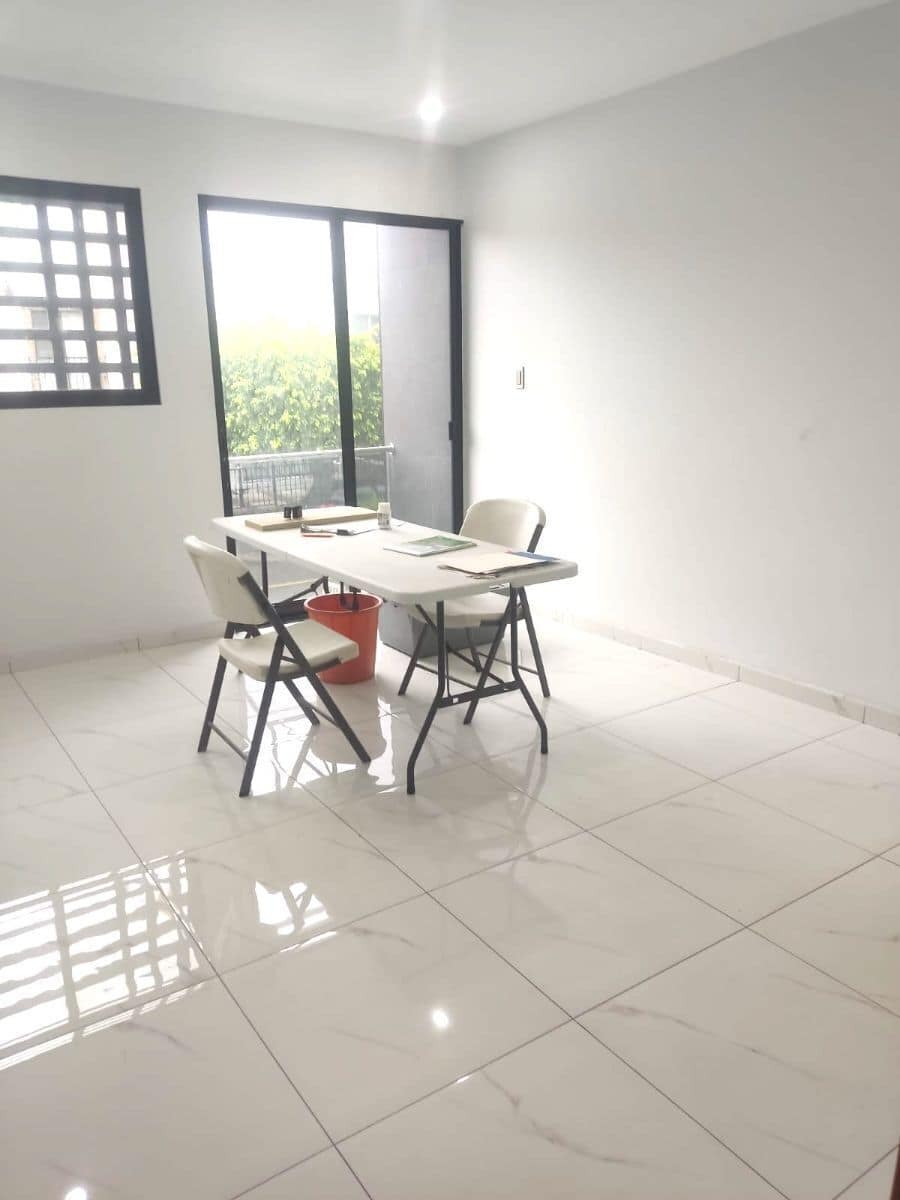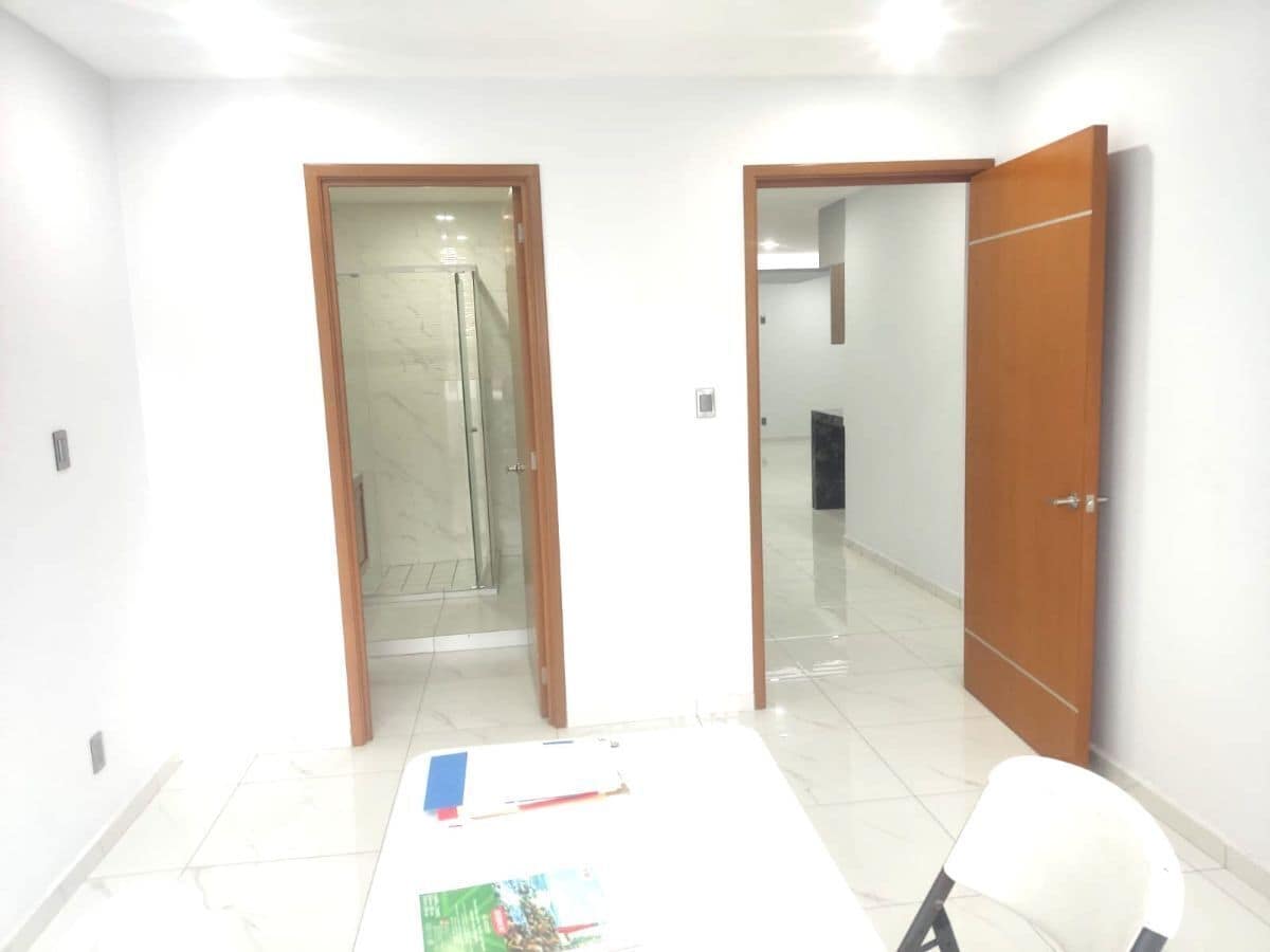 Torre de 12 departamentos NUEVOS, solo 5 disponibles, de 2 recamaras, cada una con su baño y vestidor, cocina equipada, sala-comedor, 1/2 baño para visitas, area de lavado, cochera para 1 auto, pisos porcelanato, ventaneria de aluminio, carpinteria caoba, tanque de gas estacionario, bomba de agua, bolier, aljibe, tinaco. La torre cuenta con elevador, vigilante, areas comunes, estacionamiento para visitas. Mantenimiento $ 1,500 mensuales
